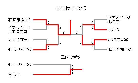 男子団体2部 D | キング商会 | 自衛隊北海道 | モアスポーツ北海道 | 順位 |