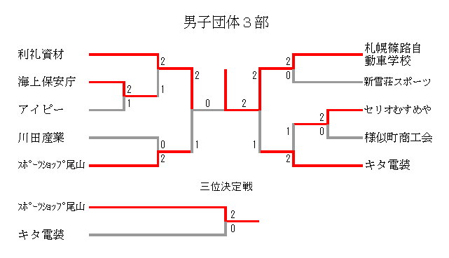 男子団体3部 C | 川田産業 | 札幌市役所 | 様似町商工会 | 順位 |