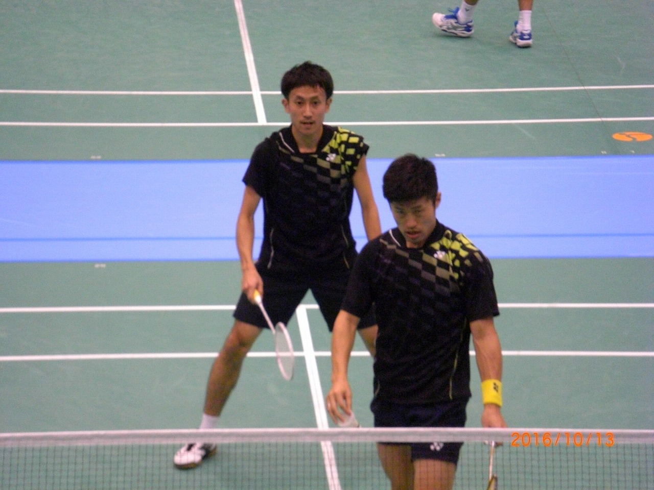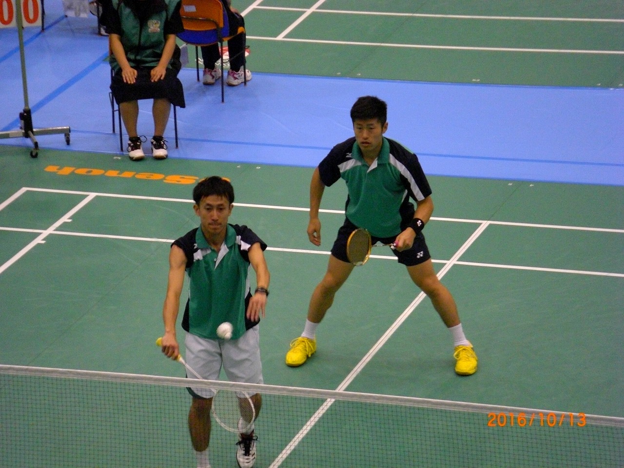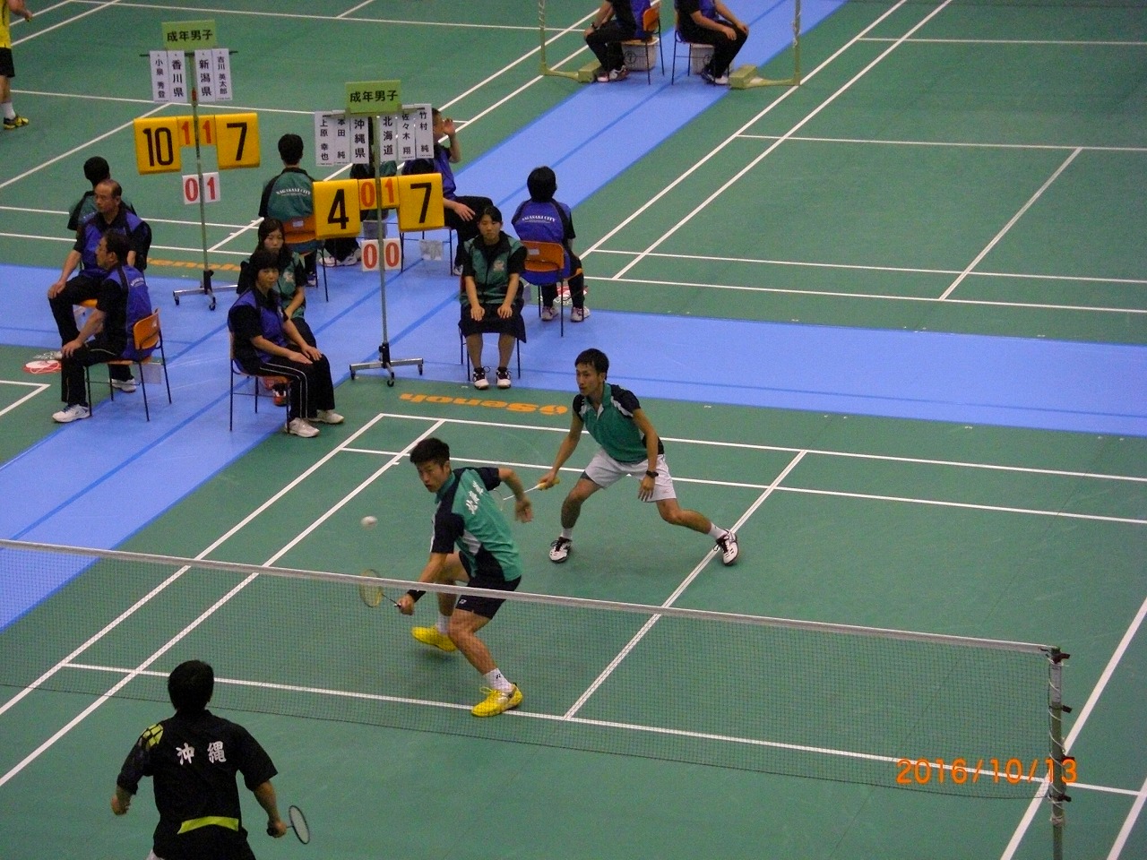 ※国体ならではの、竹村 純選手・佐々木 翔選手のドリームダブルス。観客席からたくさんの人が写メで写真を撮っていました。